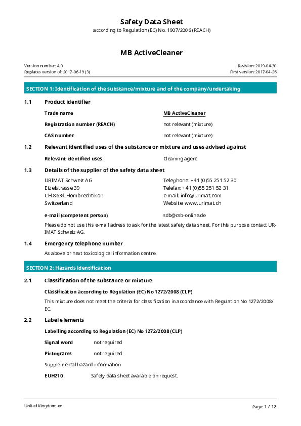 With a mixing ratio of 1:20, the URIMAT MB-ActiveCleaner is unbeatable in terms of cost-effectiveness.