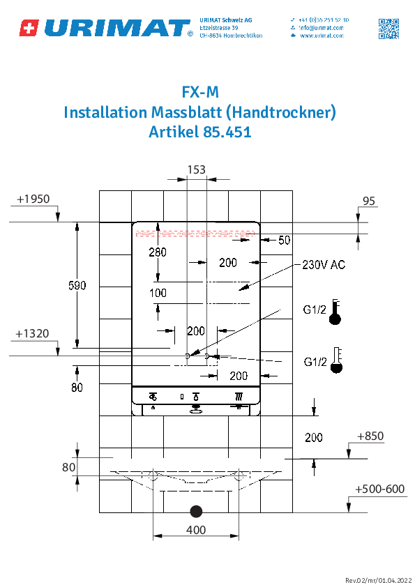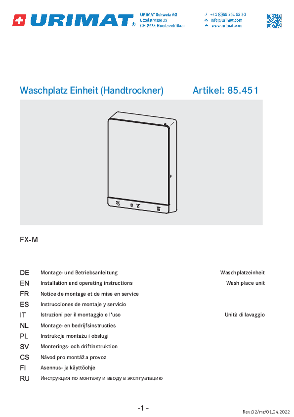 Product information URIMAT FX-M Washbasin unit hand dryerDOWNLOAD