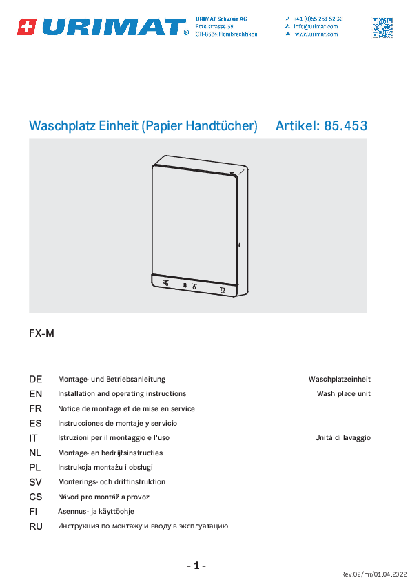 Product information URIMAT FX-M Washbasin unit paperDOWNLOAD